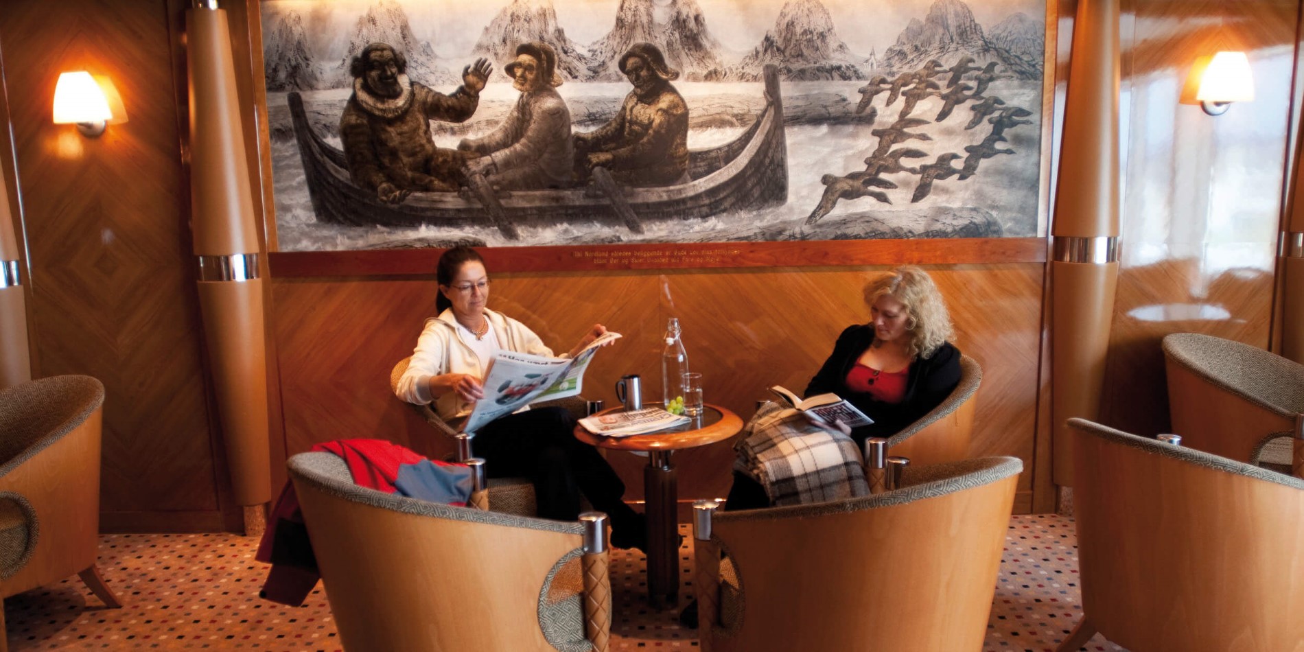 The art exhibited aboard ship includes original paintings that were once on board the old Hurtigruten ship, MS Harald Jarl. MS Trollfjord´s sun deck and hot tub are on deck 9. The ship´s spacious, two-storey panorama lounge is above the bow. Its wall-to-wall windows bathe the lounge in natural light and provide extraordinary views.