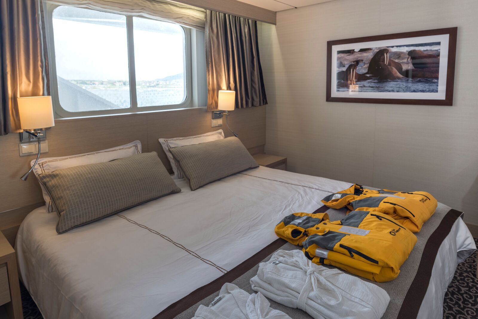 Its ice-strengthened hull and relatively small size makes this ship perfect for sailing in the ice-choked polar seas. Without compromising on safety, the ship is designed with top-notch passenger experience and comfort in mind. The vessel’s well- equipped 101 cabins are tastefully decorated and with exterior views. The ship also boasts spacious lounge and common areas, an elegant restaurant, a well-stocked polar library and a bright panorama lounge perfect for observing arctic wildlife.