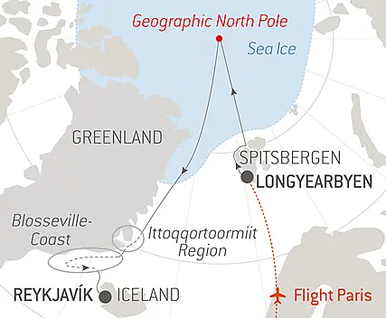 THE GEOGRAPHIC NORTH POLE AND THE EAST COAST OF GREENLAND :Longyearbyen to Reykjavik